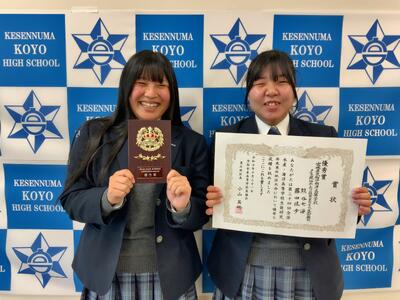 10月31日(金)に本校を会場に開催された第34回全国水産・海洋高等学校生徒研究発表東北地区大会において、産業経済科3年熊谷七海さん、藤田佳歩さんが優秀賞(第2位)を受賞し、12月に愛媛県で開催される全国大会への出場を決めました。