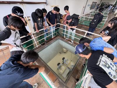 実習生は沖縄寄港中、水族館のほか、海洋関連施設の見学を行いました。海の文化資料館や宮城島の製塩工場では、海とともに生きた先人たちの歴史や文化、製塩の工程について学びました。これらの施設見学、体験を通じて、地域の海洋文化への理解を深める貴重な機会となりました。