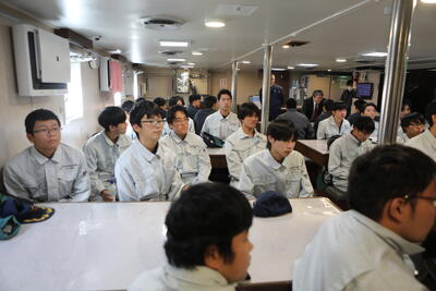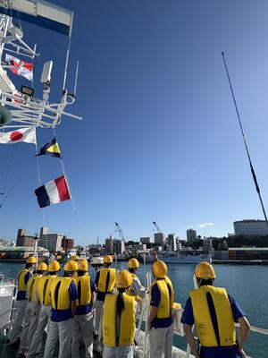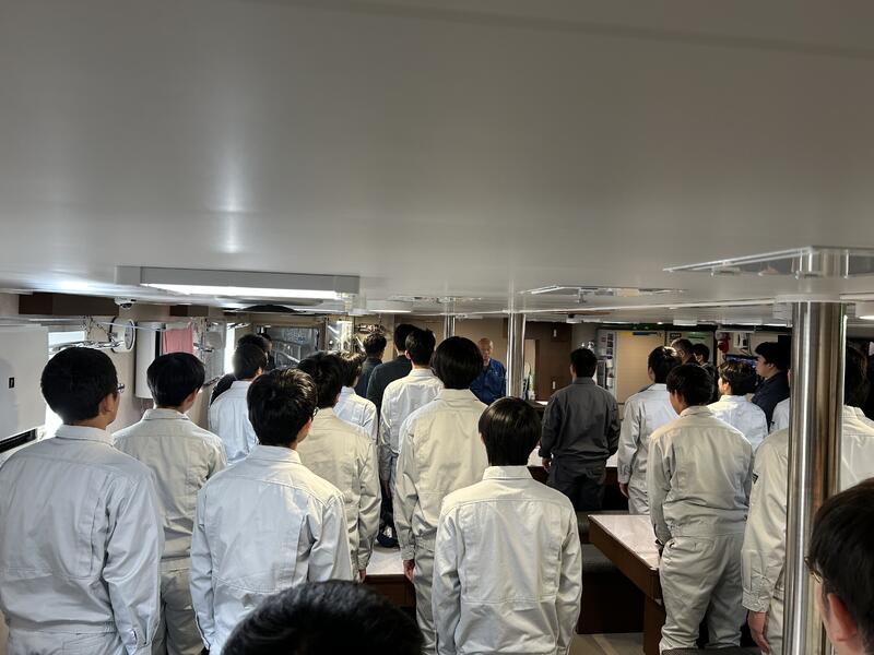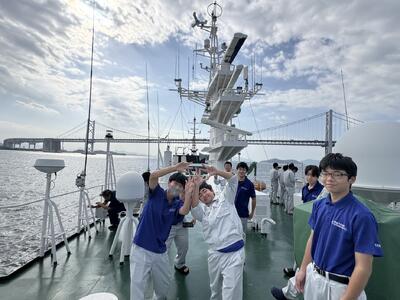 その後、宮城丸は11月8日に沖縄(那覇新港)を出港し、瀬戸内海(11月10日~11日)を航行しました。実習生たちは来島海峡航路など主要航路の交通法について学習しました。実際の航路航行を通じて、教室で学んだ理論を現場での体験と結びつけることで、より実践的な理解を深めることができました。実習も終盤となりました。気仙沼には11月19日に帰港となります。