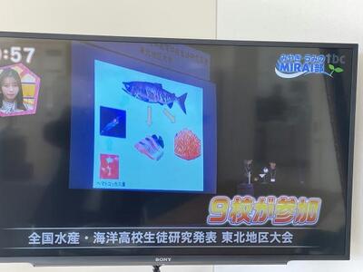 11月11日(火)、東北放送「ひるまでウォッチン!」で、全国水産・海洋高校生徒研究発表(東北地区大会)の様子が放送されました。