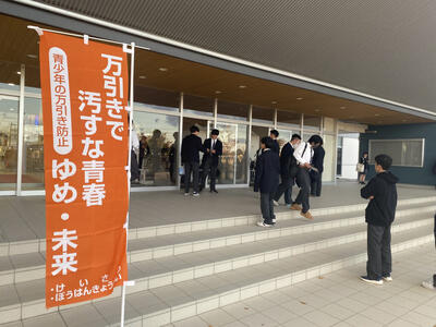 11月10日(月)、本校昇降口にて生徒会執行部が高校生に対する非行防止の呼びかけ及び広報啓発グッズの配布を行いました。気仙沼警察署や地域の方々からご指導いただき、「非行少年を生まない社会づくりを」目指し、被害者・加害者にならないための意識を高める機会となりました。