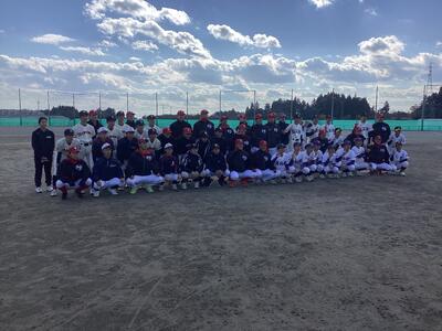 令和7年11月15日(土)に本校野球グランドを会場に、トヨタ自動車東日本野球部様を迎えて技術指導が行われました。宮城県東部北地区所属の高校と気仙沼市内の小・中学生が参加し、守備と打撃について3時間の指導を受けました。社会人野球で活躍する現役の選手との交流により、参加者は野球技術向上の気持ちが刺激された有意義な一日となりました。