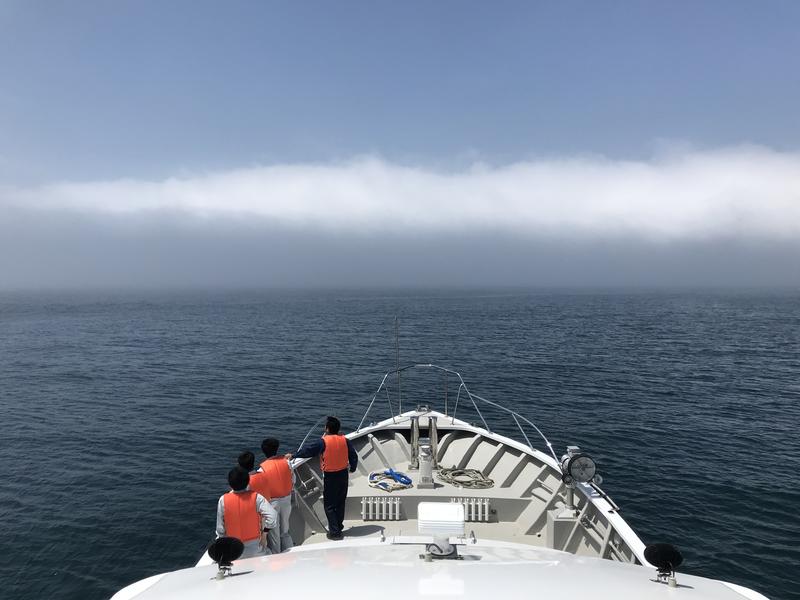 石巻出航当初は、うねりがあり船酔いの生徒が多くいましたが、現在、海況は良くなり生徒の船酔いは概ね解消されています。