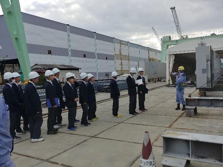 午前中は東北ドック鉄工株式会社様のご協力をいただき、事業内容の説明、船舶の修理や防波堤に使用される水門の制作の様子等を見学させていただきました。