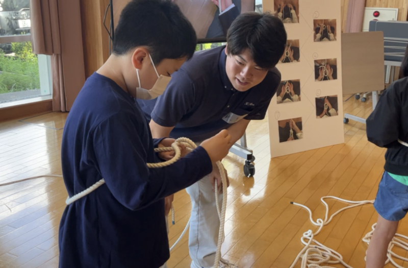 情報海洋科海洋類型3年生の生徒3名が、課題研究の授業の一環として、気仙沼市立小泉小学校の4・5年生を対象に出前授業を行いました。この取組は、向洋高校海洋類型の紹介や、ロープワークの体験実習を通して、水産の楽しさや面白さの一端を小学生に伝えたいと考え実施したものです。