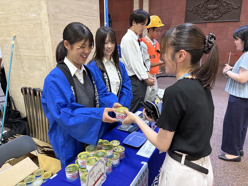 本校情報海洋科海洋類型の2年生が長期航海で捕ったマグロを使用し、産業経済科2年生が製造実習で、「まぐろの油漬け缶」を製造しています。