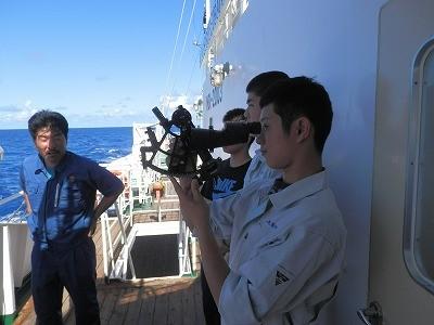 宮城丸では、引き続き船内の実習が行われています。まぐろはえ縄漁業実習が近いということで、投縄作業の練習を行いました。また、太陽の高度を測り船位を求める天測練習や、海洋観測、退船訓練などが行われました。