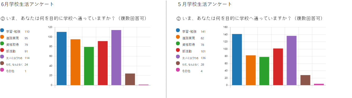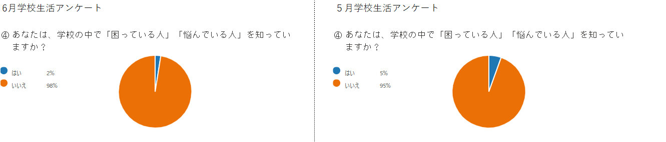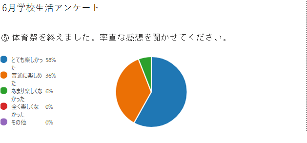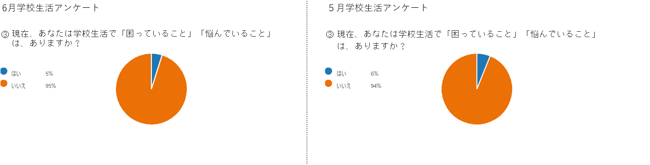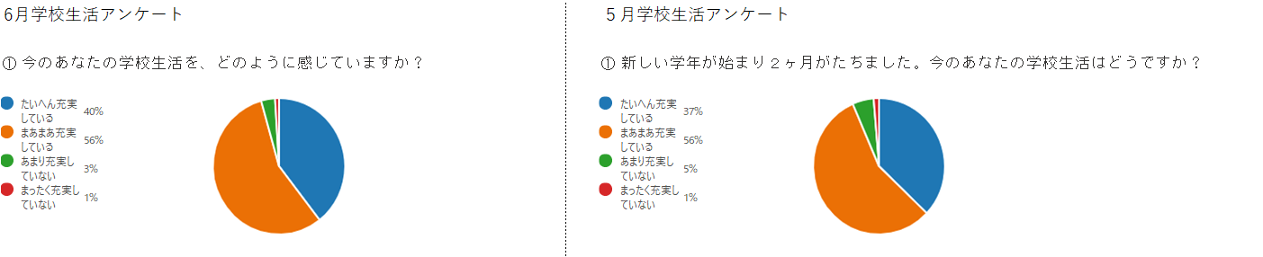5月および6月末に実施いたしました学校生活アンケートの結果から、一部抜粋したものを掲載いたします。