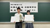 7月25日・26日に行われた第21回全国・海洋高等学校食品技能コンテストにおいて、産業経済科3年阿部蓮さんが第3位、千葉花さんが奨励賞を受賞しました。
