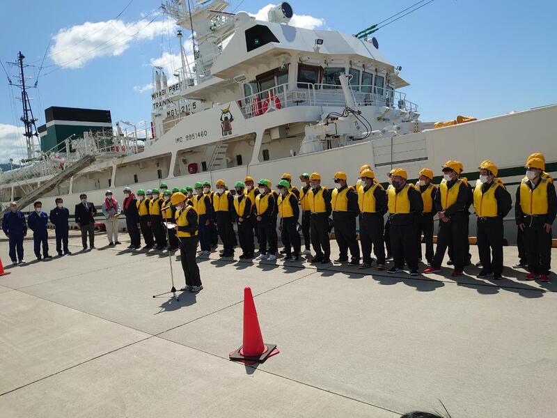 4月27日(木)、石巻新漁港において乗船実習の出港式が行われました。