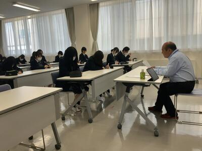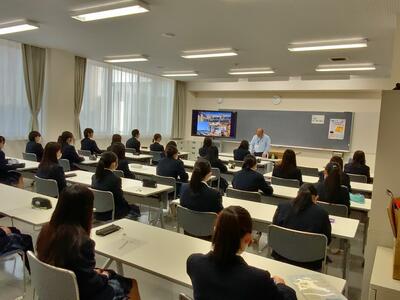 5月25日(木)に産業経済科2学年が「商品開発と流通」で「道の駅」大谷海岸駅長講話を受講しました。