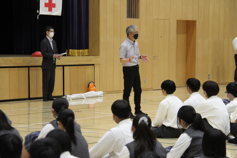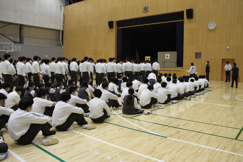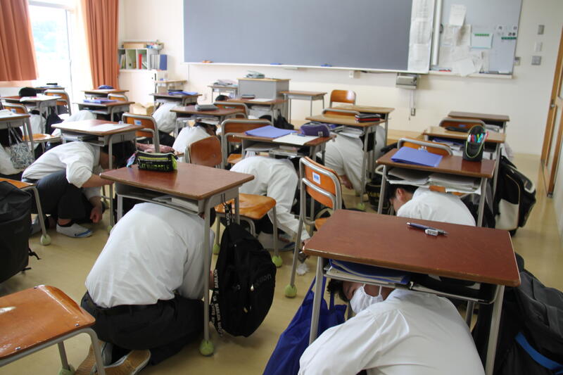 机の下にもぐる行動、避難場所への移動、整列・点呼など、一連の避難行動に生徒・職員ともに真剣に取り組み、スムーズに訓練を実施することができました。