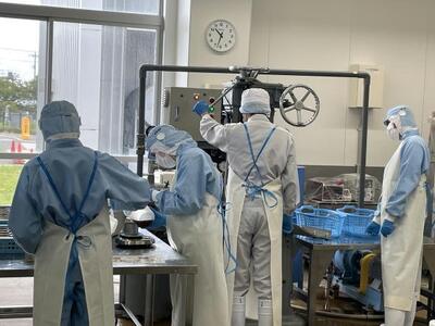9月12日(金)、産業経済科でHACCP(ハサップ)の検査が行われました。本校はHACCPの認証を受けた工場で缶詰製造を行っており、食品の安全を確保しています。今日は、実際の製造実習の現場で、食品安全衛生合同会社の田中宏朗様に定期検査を行っていただきました。