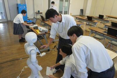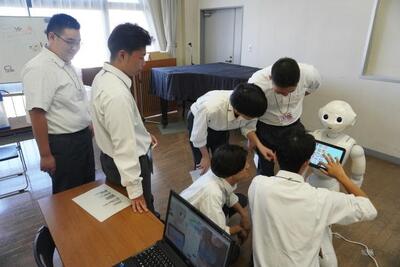 授業内容は、人型ロボットPepper(ペッパー)に、scratchソフトウェアを利用したプログラミングを行い、動作させたりしゃべらせたりする内容でした。