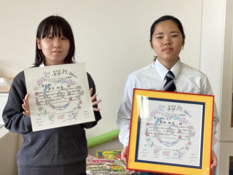 機械技術科1年菊田桃花さんが準グランプリ、産業経済科3年長尾柚菜さんが奨励賞を受賞しました。