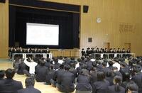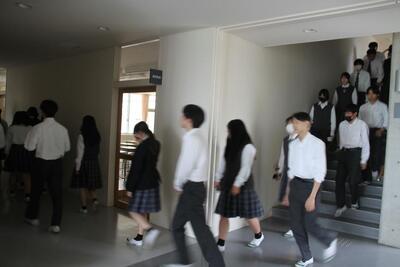 6月4日(水)、第1回総合防災訓練をおこないました。大きな地震が発生し、津波警報が発令された事を想定し、全校で体育館へ一斉避難しました。真剣かつ冷静な避難行動により、避難指示から8分で生徒、教職員全員の点呼・安否確認ができました。