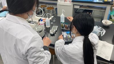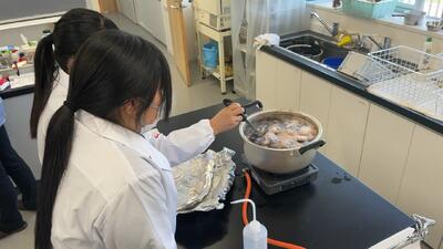 5月19日(月)、気仙沼市の議員さんが来校され、校長先生と一緒に産業経済科3年生の課題研究の様子を視察しました。ホヤの殻から抽出される成分の分析、活用方法について生徒たちから説明していただきました。また、ウニ殻の活用も検討しているという話を聞き、廃棄物の削減に関するSDGsへの取り組みにつながる、とても良い研究内容でした。別のグループでは未利用魚による食品開発を実践しており、生徒が主体的に探究する学びが進められています。