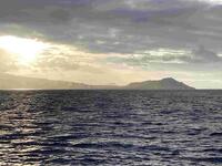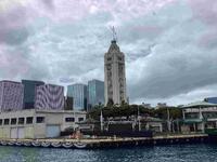 ダイヤモンドヘッドを望む ホノルル入港! 係船設備を整備中!