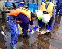 揚縄での魚体処理(神経締め)