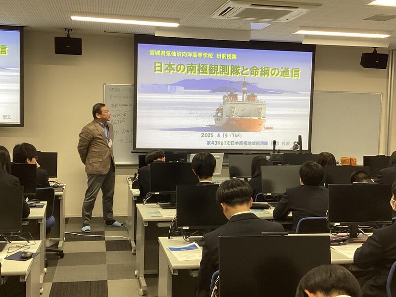 加えて、陸上無線協会の氏家様からは、南極観測隊員としての通信業務や砕氷船「しらせ」での任務経験、モールス信号の活用など、日常の授業では得られない貴重なお話をいただきました。現場で求められる通信技術の重要性や責任の重さを感じ取ることができ、生徒たちにとって大きな刺激となりました。
