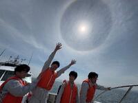 帰りの航海では、太陽の周りに現れるハロ・日暈(ひがさ)を見ることができました。これを見られるときは、天気が崩れるサインと言われています。(確かに次の日は雨でした。)