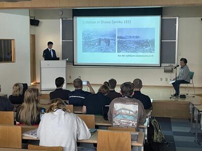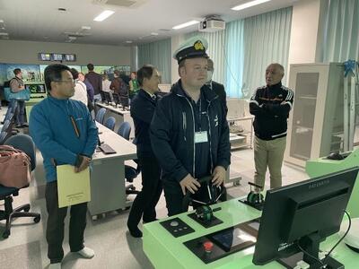 11月4日(火)、日独スポーツ少年団指導者セミナーに参加している、ドイツのスポーツ指導者の皆さんが来校されました。10種類のスポーツを、それぞれ子供たちに教える先生方ですが、ドイツの学校には部活動がないため、本校の部活動の様子を興味深くご覧いただきました。また、教育設備では船舶操縦シミュレータを体験され、とても喜んでいただきました。
