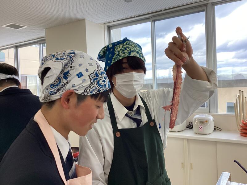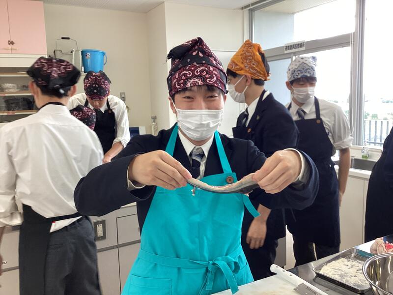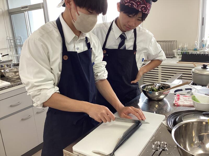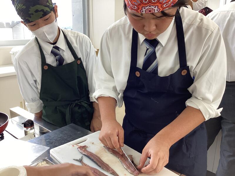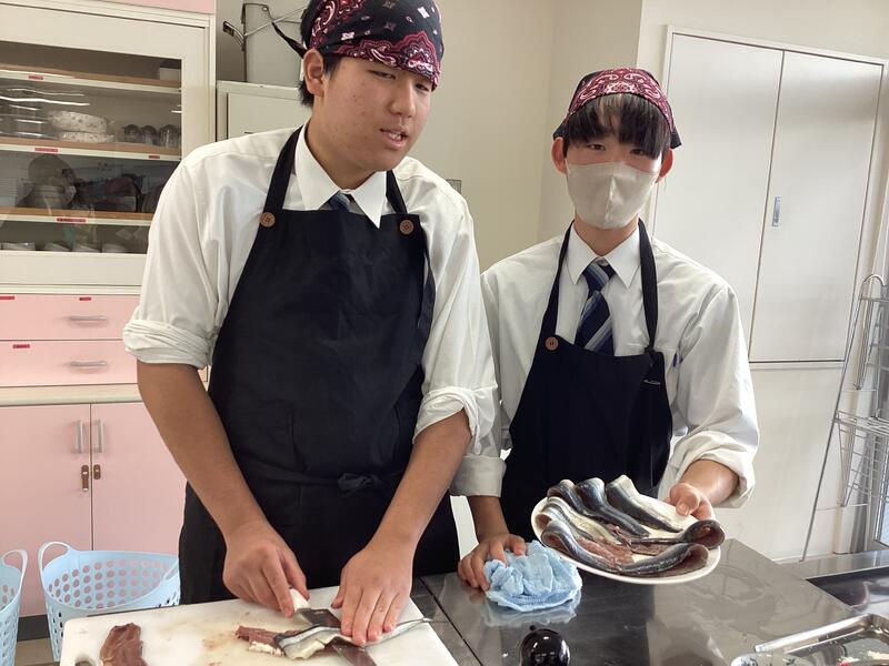 調理実習「さんまの蒲焼き丼」(機械技術科2年)