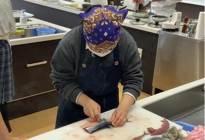 講師にリアス調理製菓専門学校の松田先生をお招きし、イカのさばき方や、秋刀魚のつみれの作り方など丁寧に説明をいただきました。