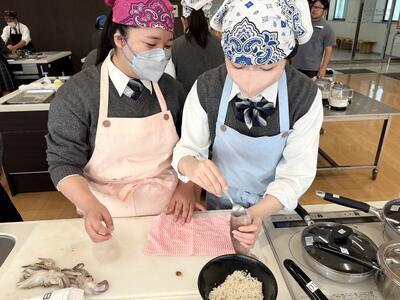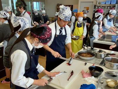 10月24日(金)に産業経済科3年生が魚市場2階のクッキングスタジオで調理実習を行いました。