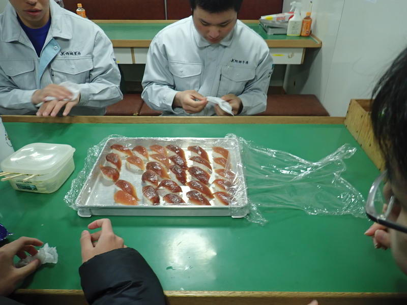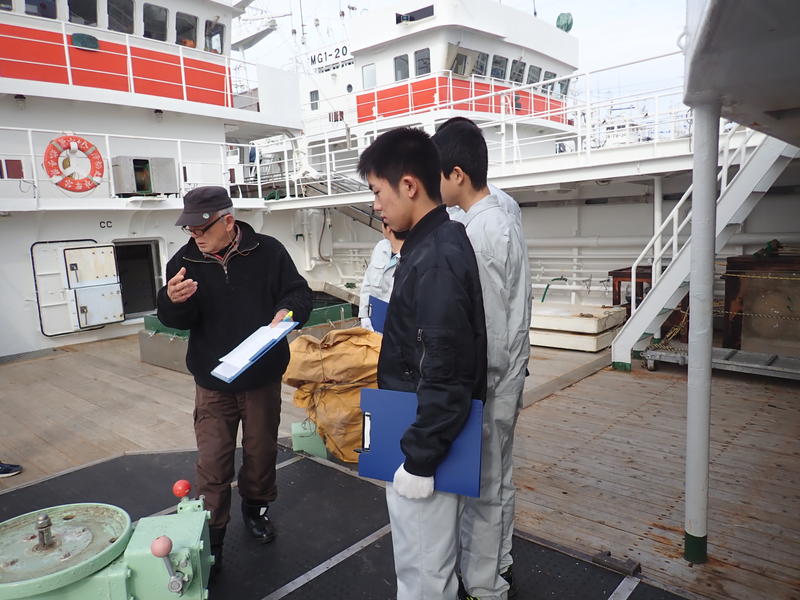 マグロ延縄船見学では宮城県北部船主協会、浜田漁業部の皆様にご協力いただき、今現在使われているマグロ延縄船、第68清福丸を見学させていただきました。普段は見ることができない魚倉、機関室等も見せていただき、生徒達は興味深そうに見学するとともに説明に納得した様子でした。
