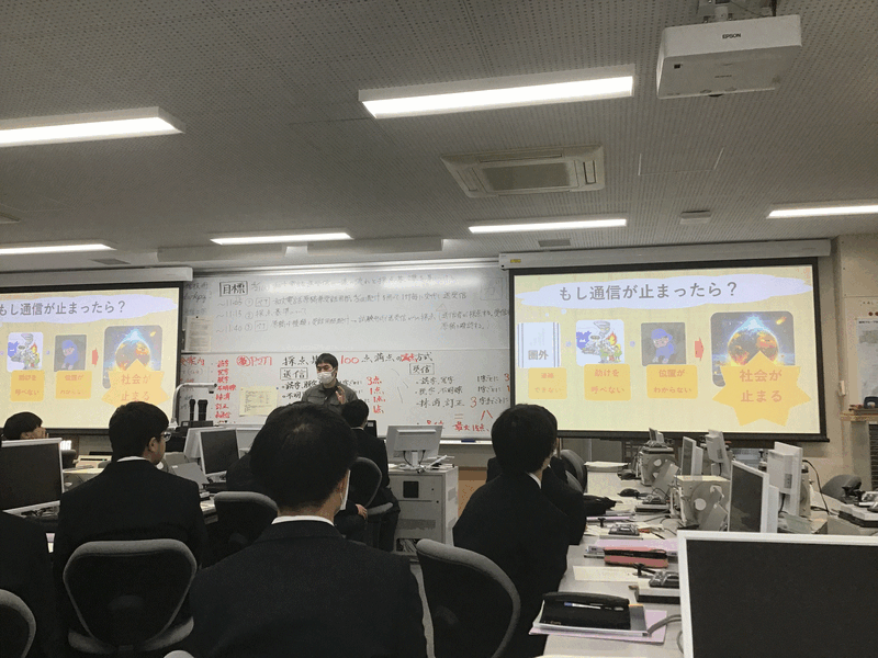 4月22日(水)、情報海洋科1年生を対象に、情報電子類型の通信に関するオリエンテーション授業を行いました。