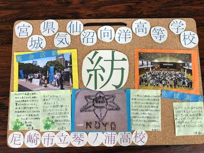 7月21日に,尼崎市立琴ノ浦高等学校の生徒2名・教員1名の皆様にご来校いただき,本校生徒に向けたメッセージボードとお見舞いをいただきました。東日本大震災から7年以上が経過しましたが,日本のどこかで本校生徒のことを気にかけてくださる皆様がいらっしゃること,本当にありがたい限りです。頂いたご厚情を忘れることなく,気仙沼向洋高もますます頑張って参ります。本当にありがとうございました。