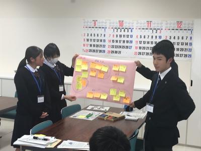 11月8日(木),本校においでになった宮崎県立福島高等学校の生徒・先生,宮崎県教育委員会,串間市教育委員会の皆様と,本校生徒会役員とで,合同防災学習を行いました。東日本大震災当時の生徒・職員の対応に関する講話ののちに,両校生徒の合同グループによる「防災ワークショップ」を行いました。それぞれの考えを出し合いながら,防災・減災について互いに学び合う,貴重な時間となりました。