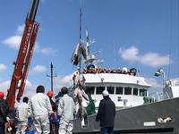 気仙沼漁港にて,宮城丸第3次航海の水揚げが行われました。