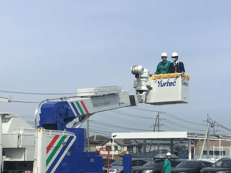 株式会社ユアテックでは、主に技術者の方々が働いている企業であることや宮城県庁や気仙沼市役所など、地域の公共施設の施工に関わる仕事を担っていることを教えていただきました。また、体験活動として高所作業車に乗せていただき、市内の風景を見渡す貴重な体験もさせていただきました。